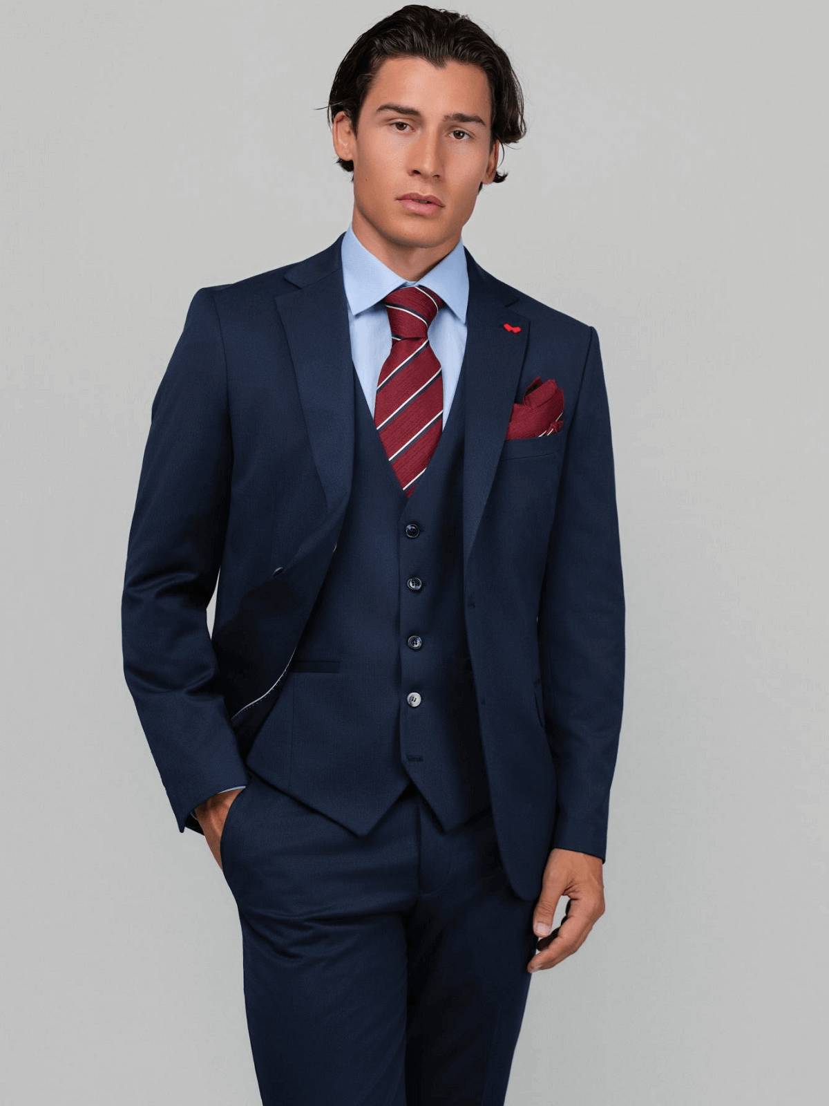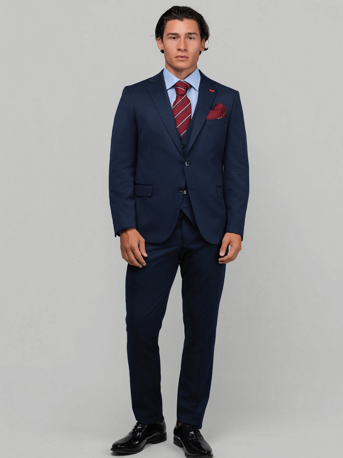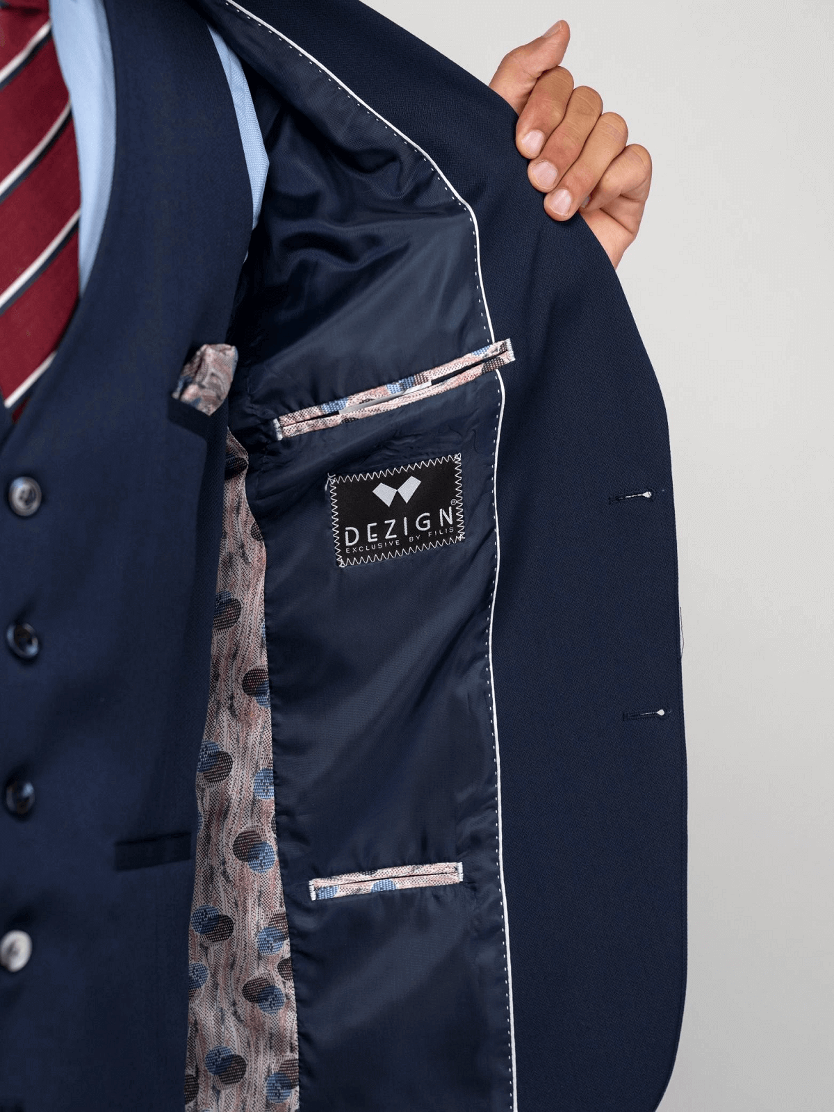 Ανδρικό κοστούμι slim fit με ύφασμα ψαροκκόκαλου DEZIGN μπλέ χρώμα