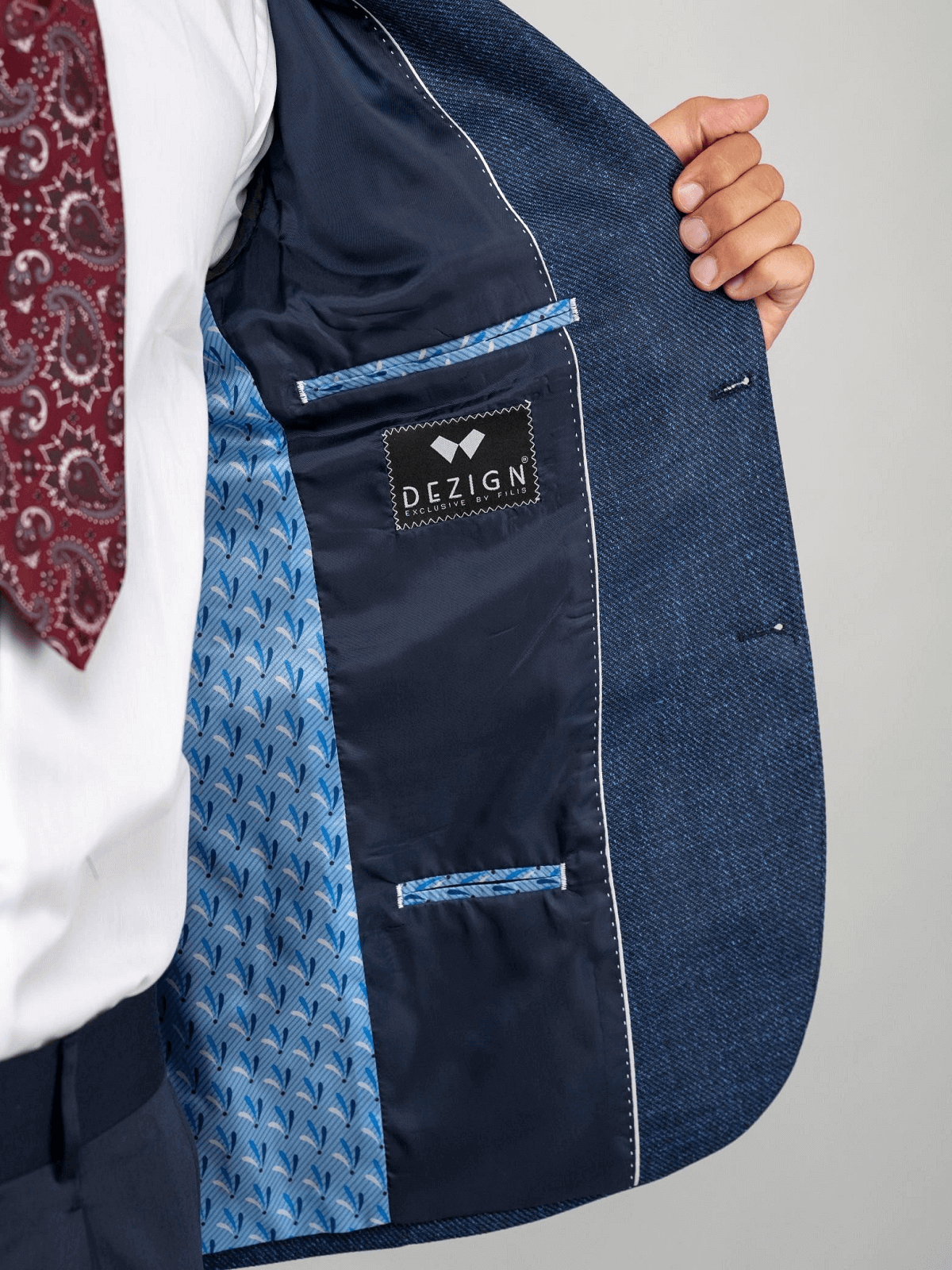 Ανδρικό slim fit σακάκι με μικροσχέδιο DEZIGN μπλέ χρώμα