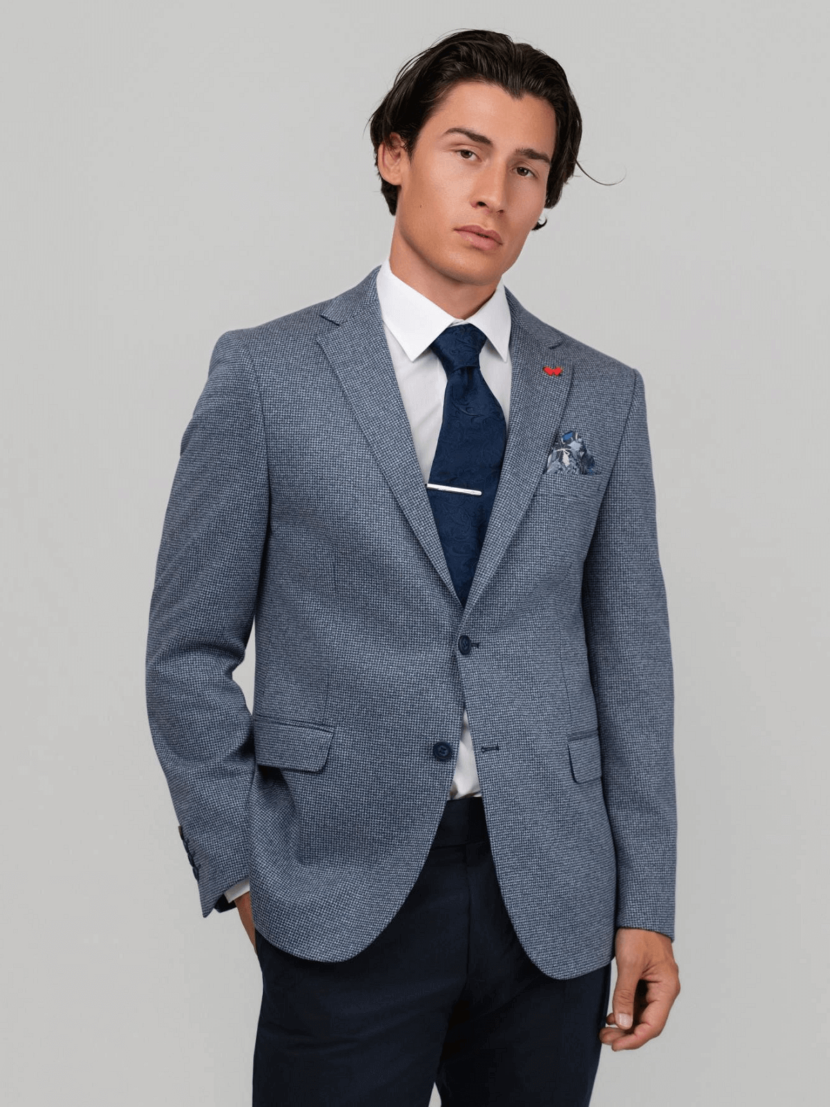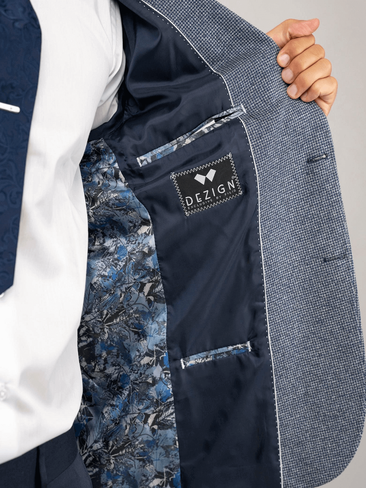 Ανδρικό slim fit σακάκι με μικροσχέδιο DEZIGN γκρί-μπλέ χρώμα