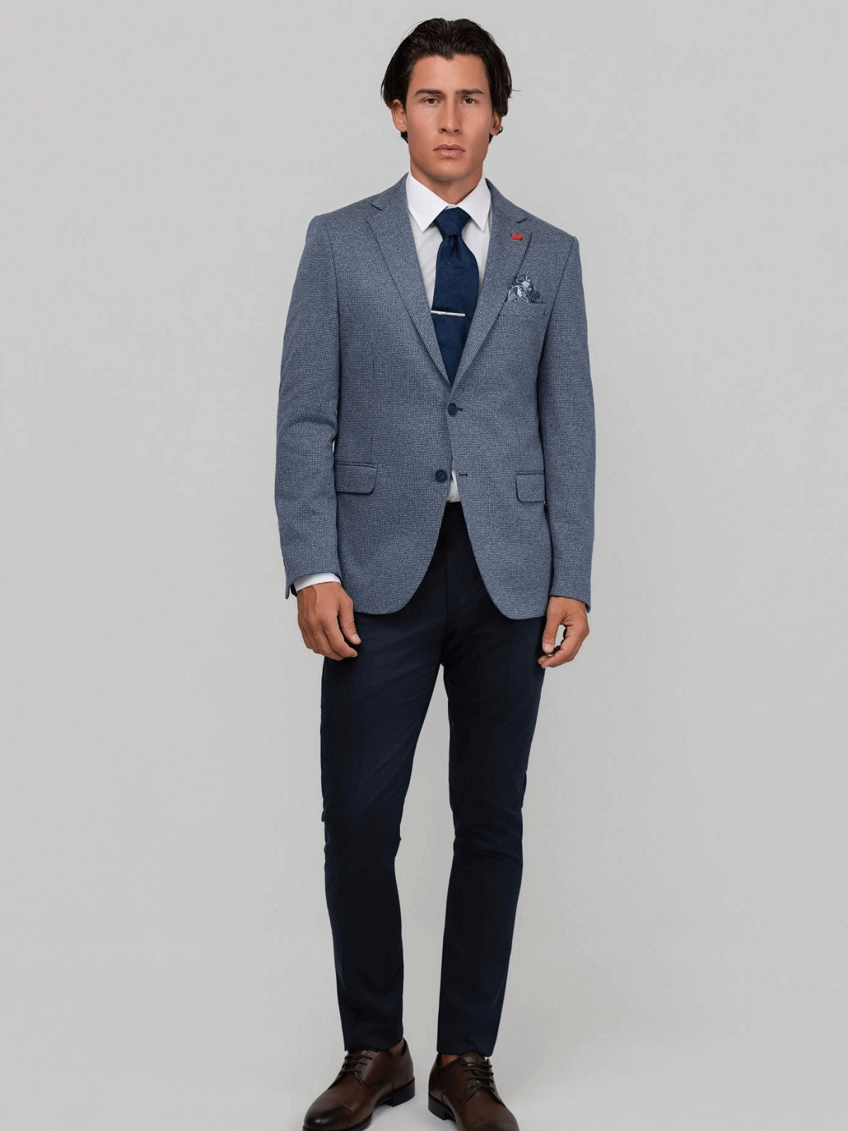Ανδρικό ελαστικό σακάκι με μικροσχέδιο,2 σκισίματα και 2κουμπιά σε στενή γραμμή,κατασκευασμένο από εξαιρετικής ποιότητας ύφασμα.
