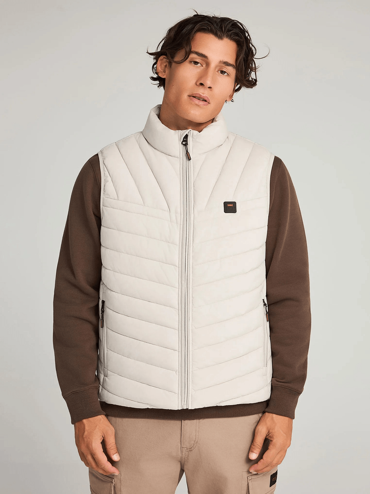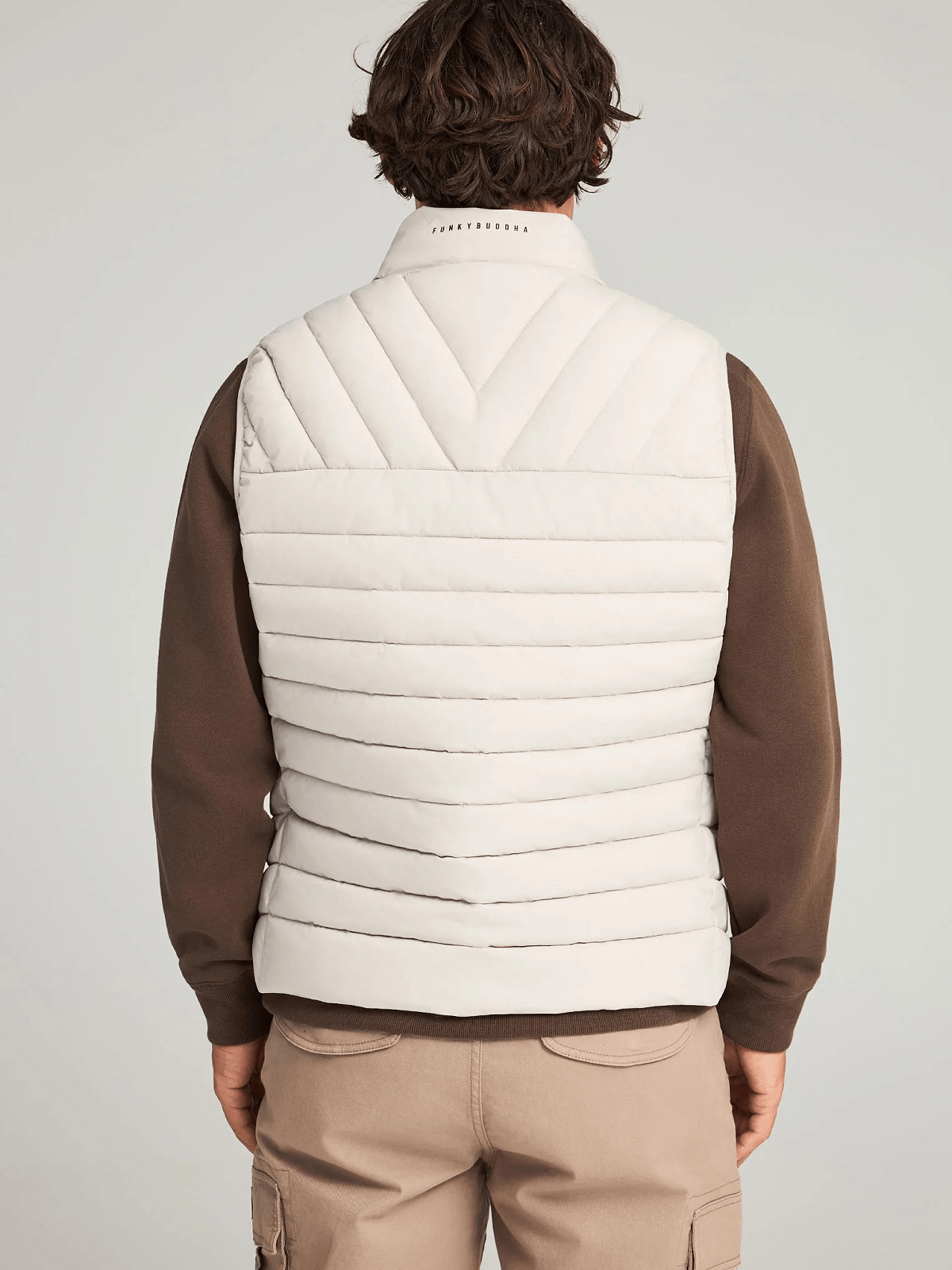 Ανδρικό αμάνικο καπιτονέ μπουφάν Funky Buddha μπέζ χρώμα