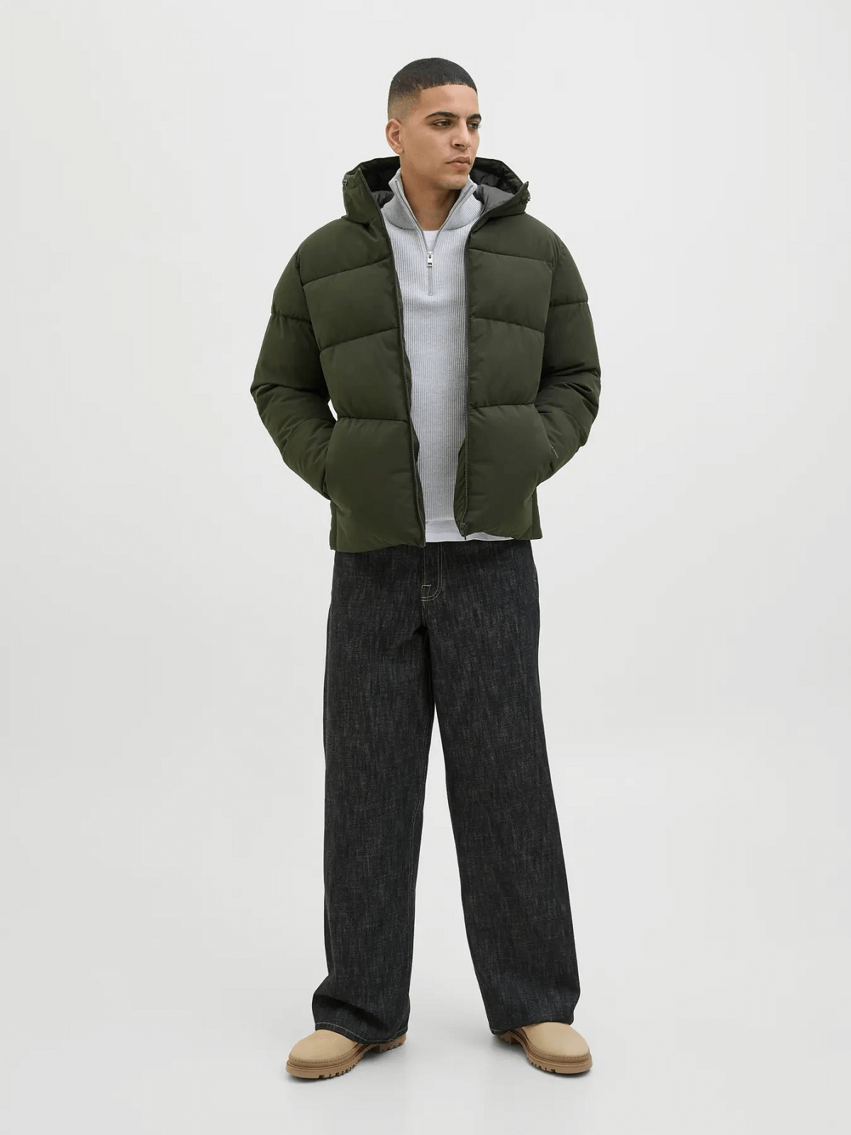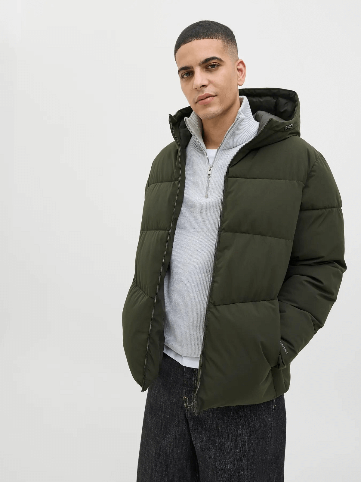 Ανδρικό μπουφάν puffer Jack&Jones λαδί χρώμα