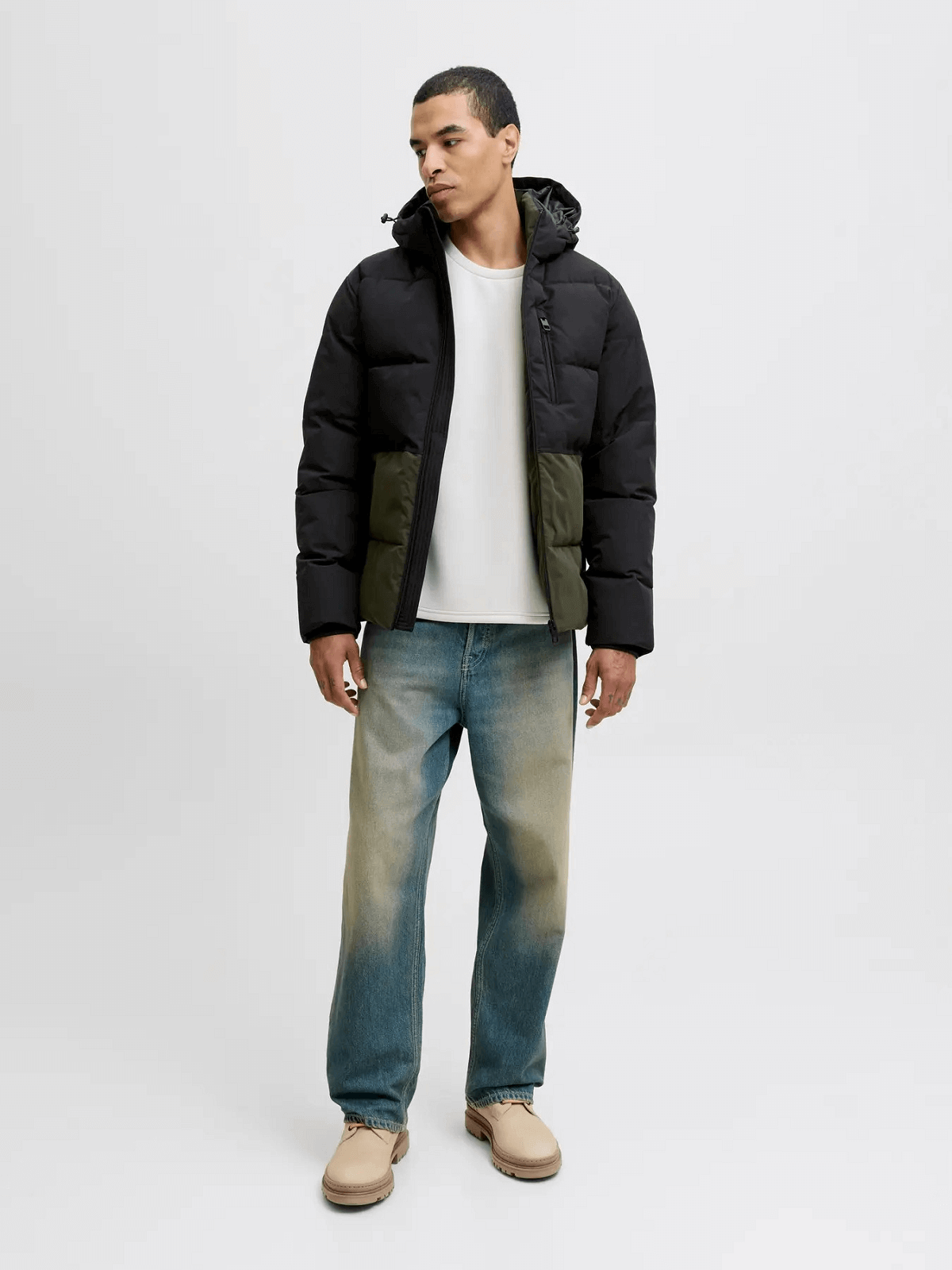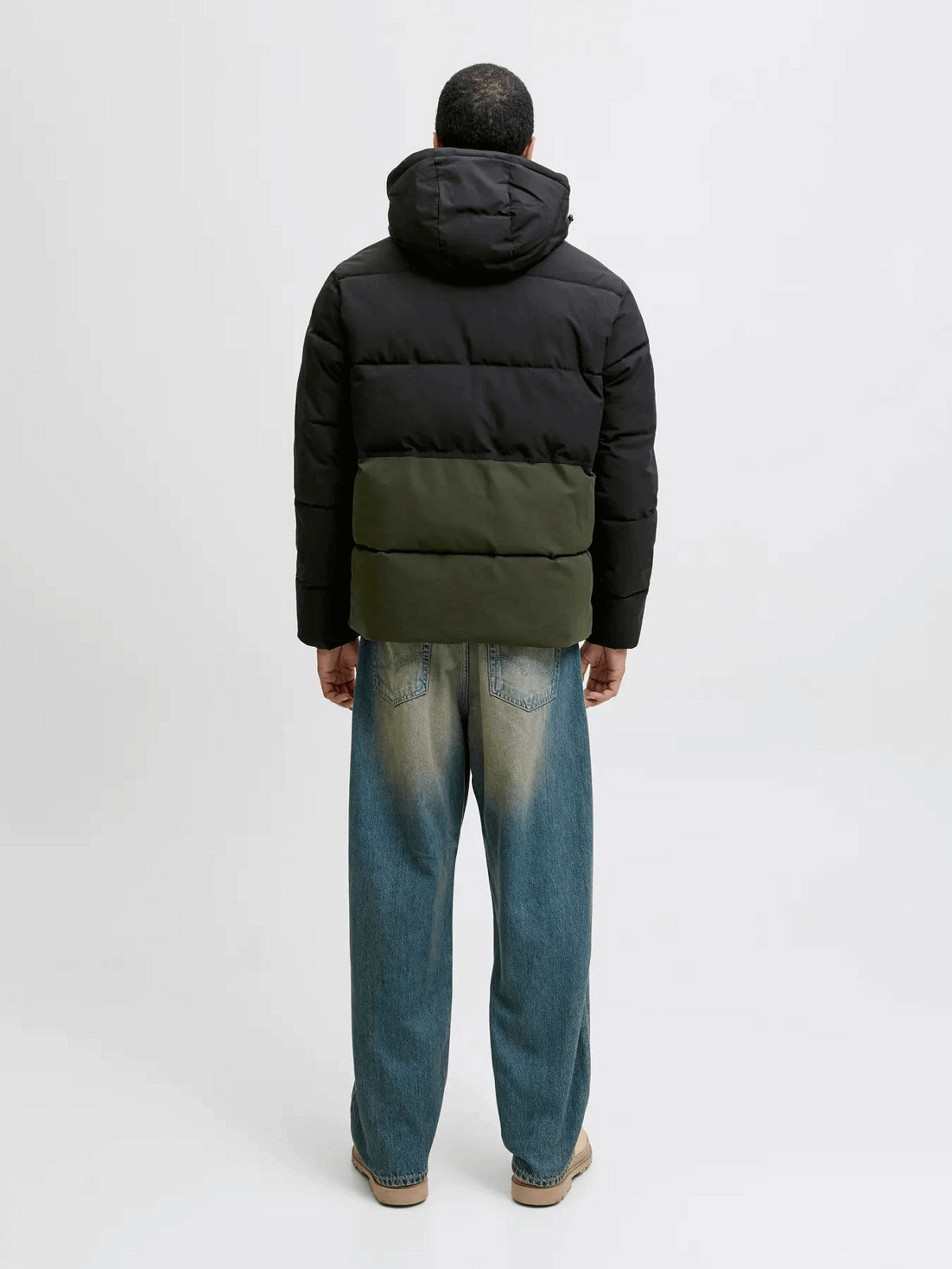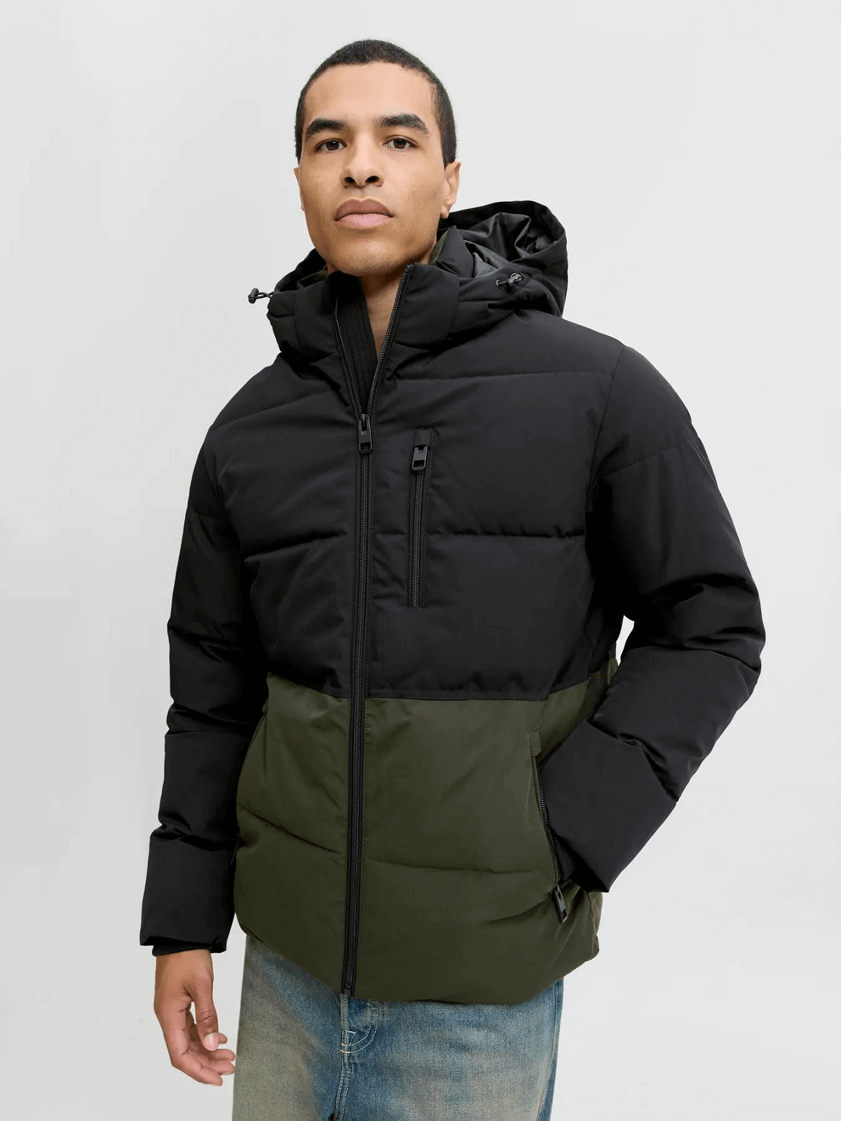 Ανδρικό μπουφάν puffer Jack&Jones λαδί-μαύρο χρώμα