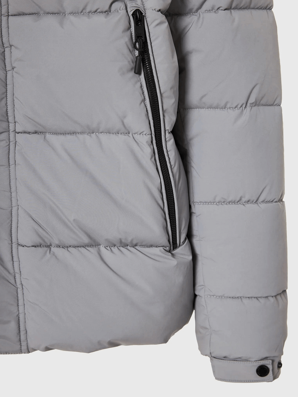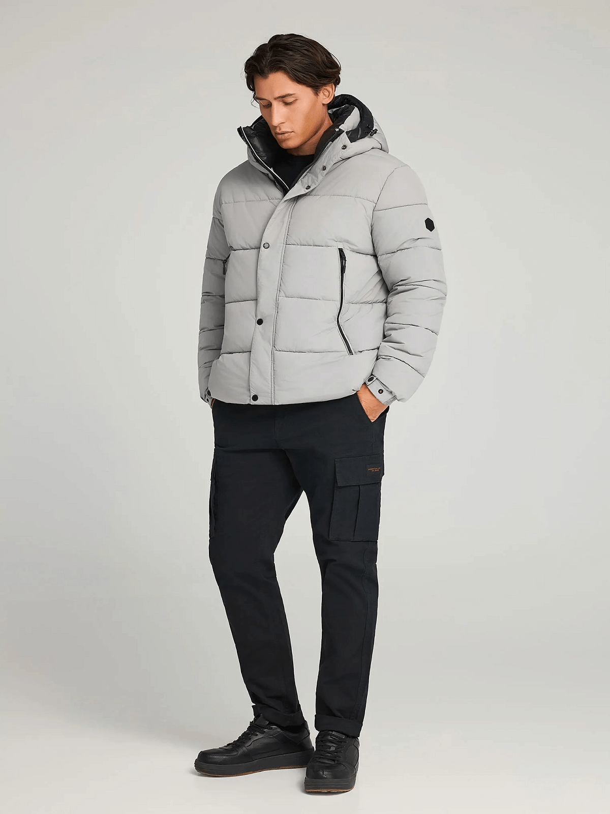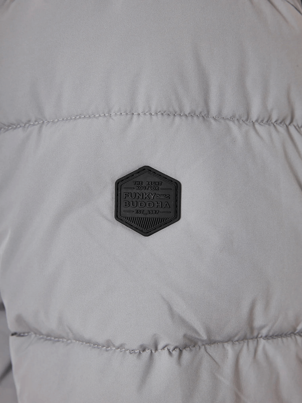 Ανδρικό puffer μπουφάν με κουκούλα Funky Buddha γκρί χρώμα