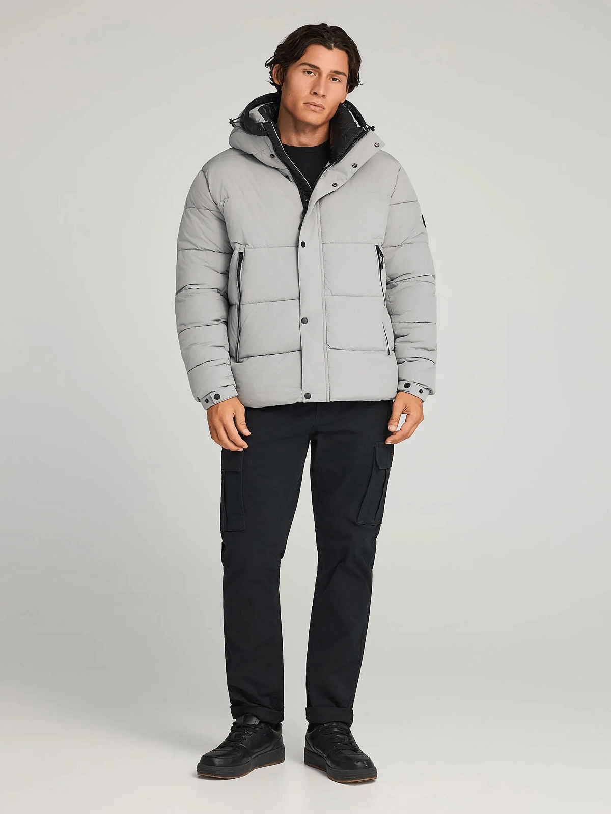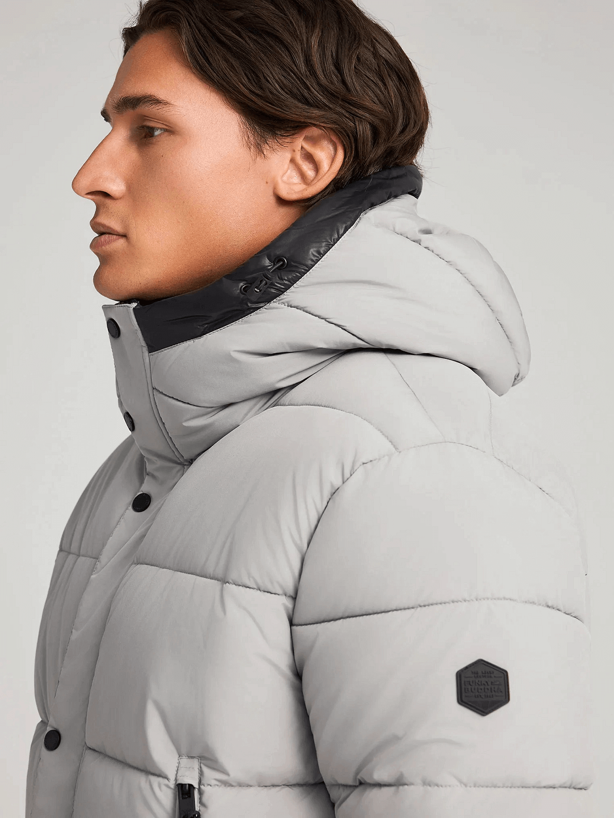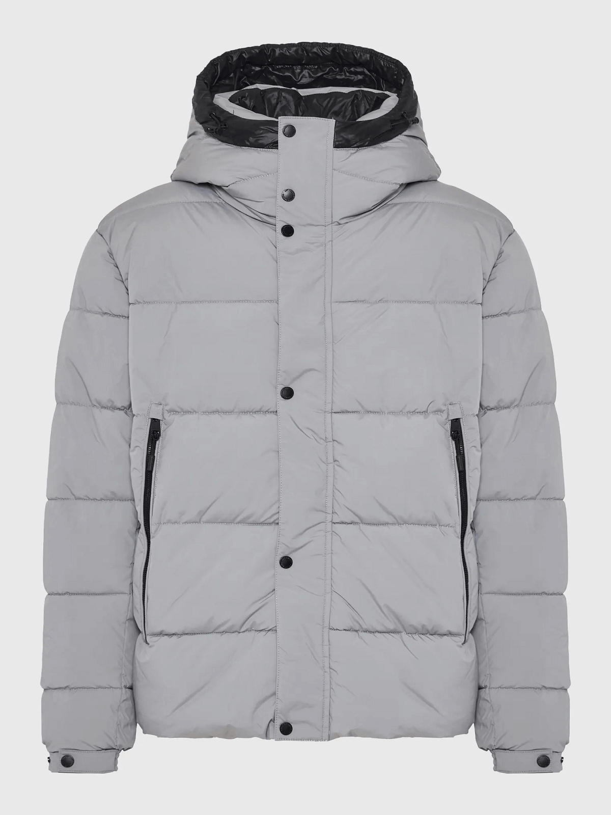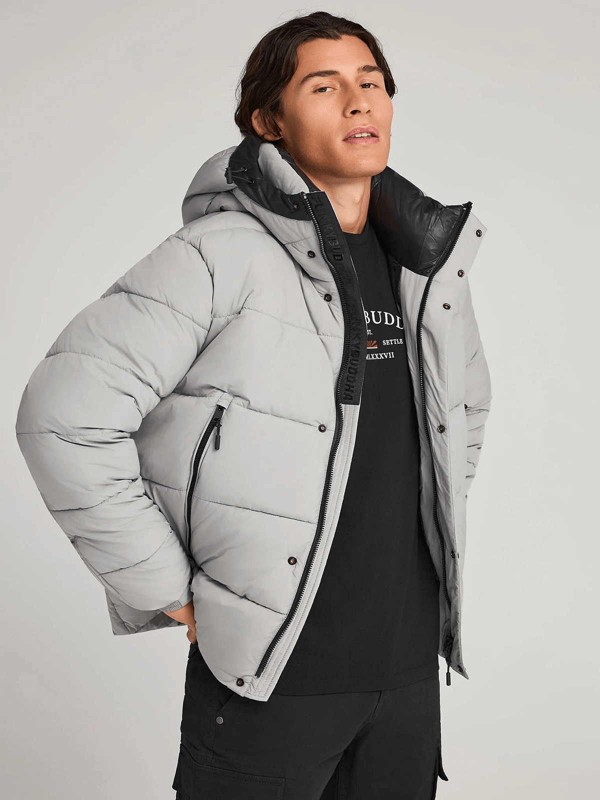 Ανδρικό puffer μπουφάν με κουκούλα Funky Buddha γκρί χρώμα