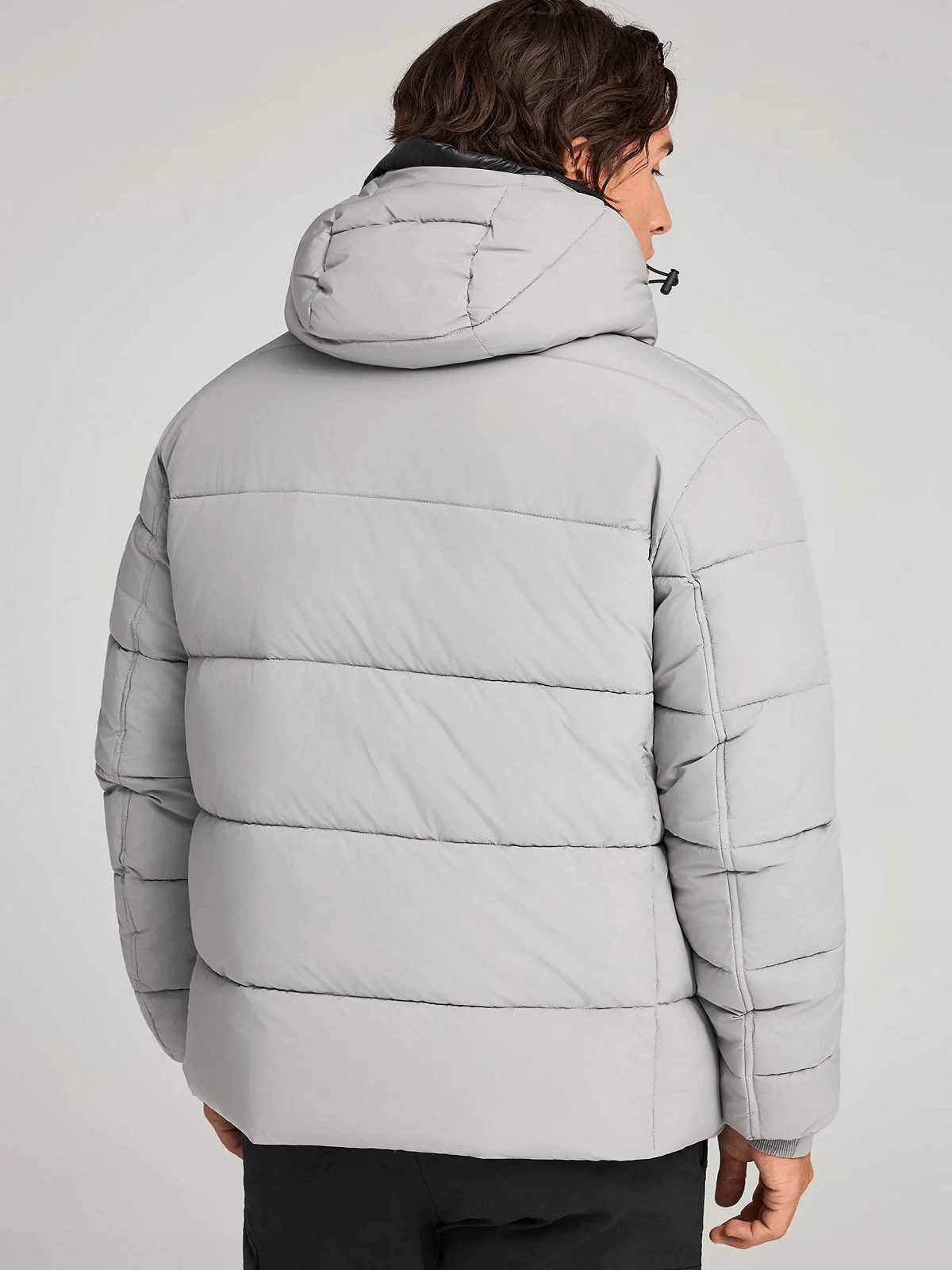 Ανδρικό μονόχρωμο puffer μπουφάν, ιδανικό για τις κρύες ημέρες του φθινοπώρου και του χειμώνα. Με κανονική εφαρμογή και μήκος μέχρι τους γοφούς, προσφέρει άνεση και προστασία, χάρη στον ψηλό λαιμό με κουκούλα και τις ρυθμιζόμενες μανσέτες. Η καπιτονέ υφή του από συνθετικά υφάσματα και πολυεστέρα χαρίζει ζεστασιά και ανθεκτικότητα, ενώ η λεπτομέρεια λογότυπου προσθέτει διακριτικό στυλ. Εξοπλισμένο με τσέπη με φερμουάρ και διπλό κλείσιμο με φερμουάρ και κουμπιά, αποτελεί ιδανική επιλογή για σπορ χιονιού, πεζοπορία και outdoor δραστηριότητες. Συνδυάστε το με casual στρώσεις και ανθεκτικά παπούτσια για μια ολοκληρωμένη εμφάνιση εξωτερικού χώρου.