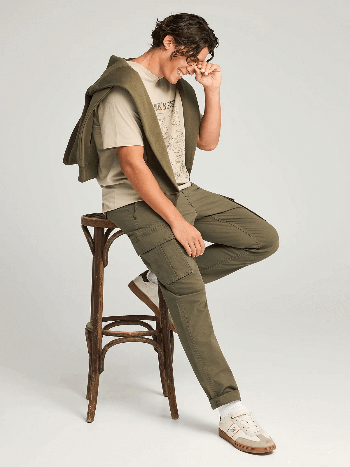 Ανδρικό comfort cargo παντελόνι – The essentials Funky Buddha λαδί χρώμα