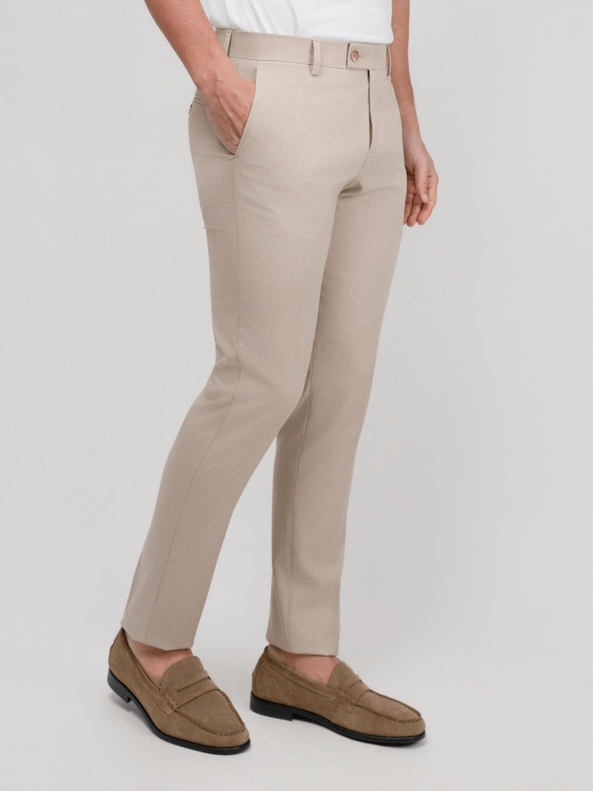 Ελαστικό μοντέρνο Slim Fit πικέ υφασμάτινο παντελόνι DEZIGN μπέζ χρώμα