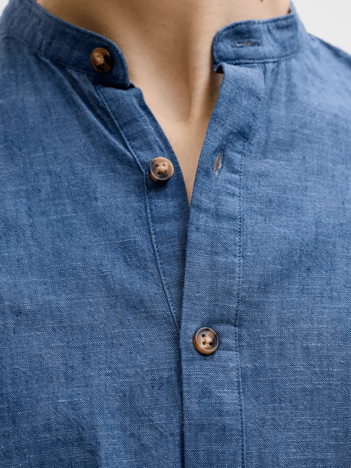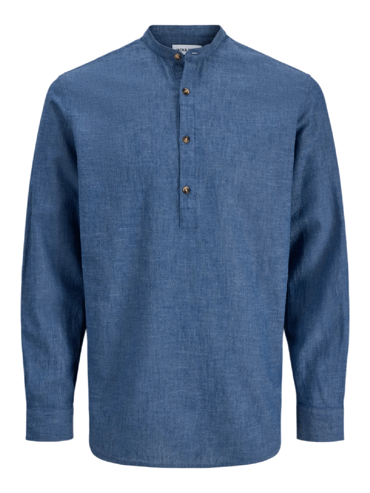 Ανδρικό λινό πουκάμισο με μάο γιακά Jack&Jones μπλέ χρώμα