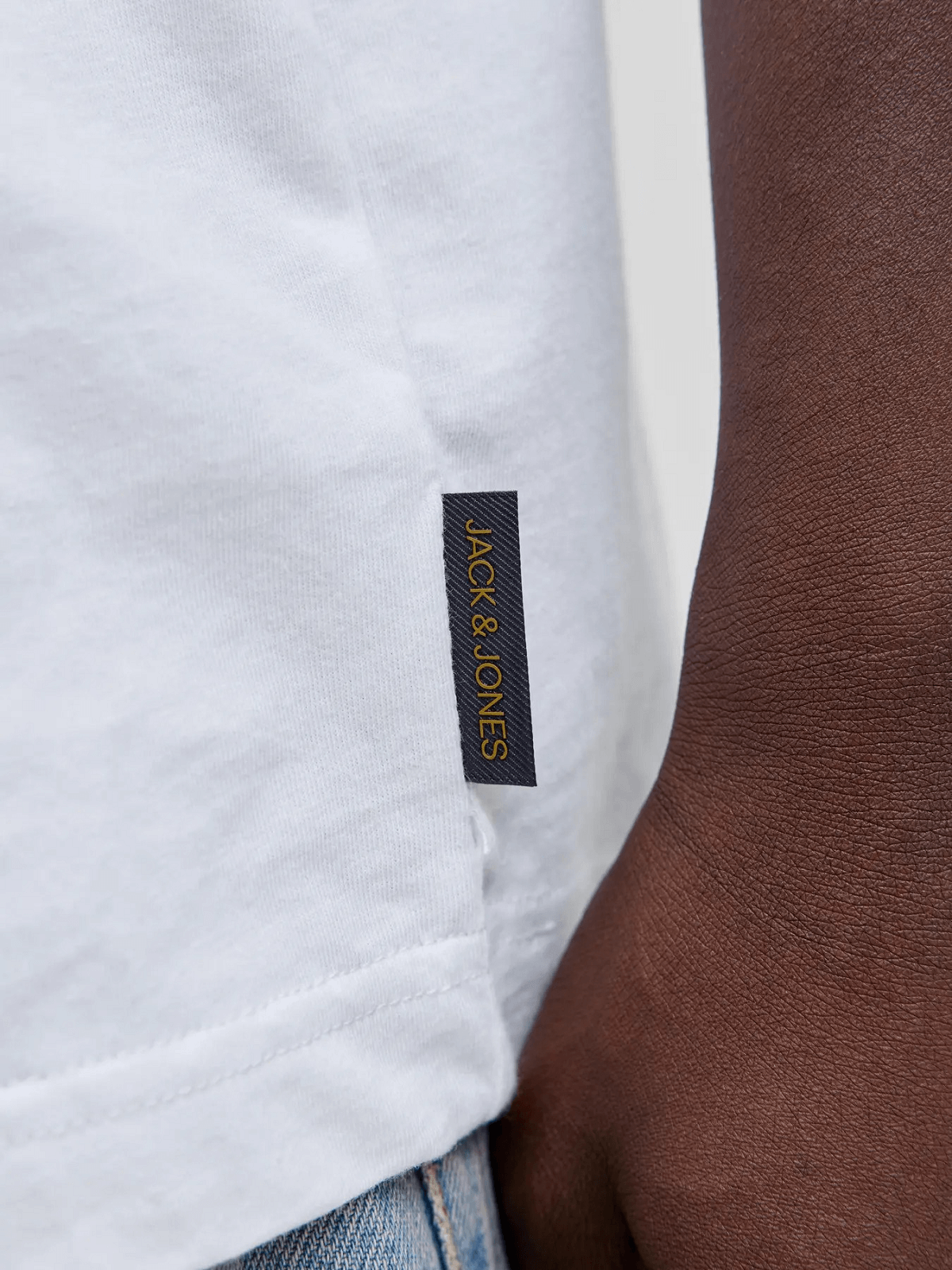 Ανδρικό βαμβακερό T-shirt με λαιμόκοψη και logo Jack&Jones άσπρο χρώμα