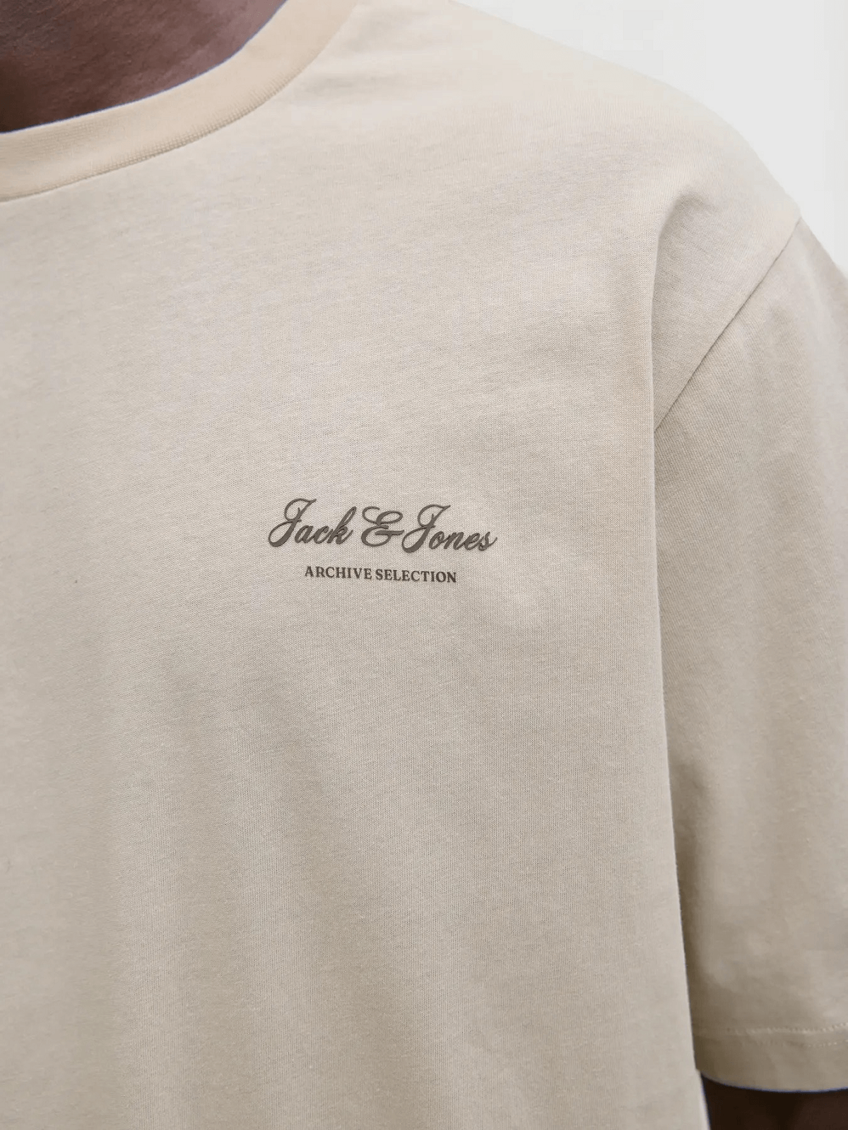 Ανδρικό βαμβακερό T-shirt με λαιμόκοψη και logo Jack&Jones μπέζ χρώμα