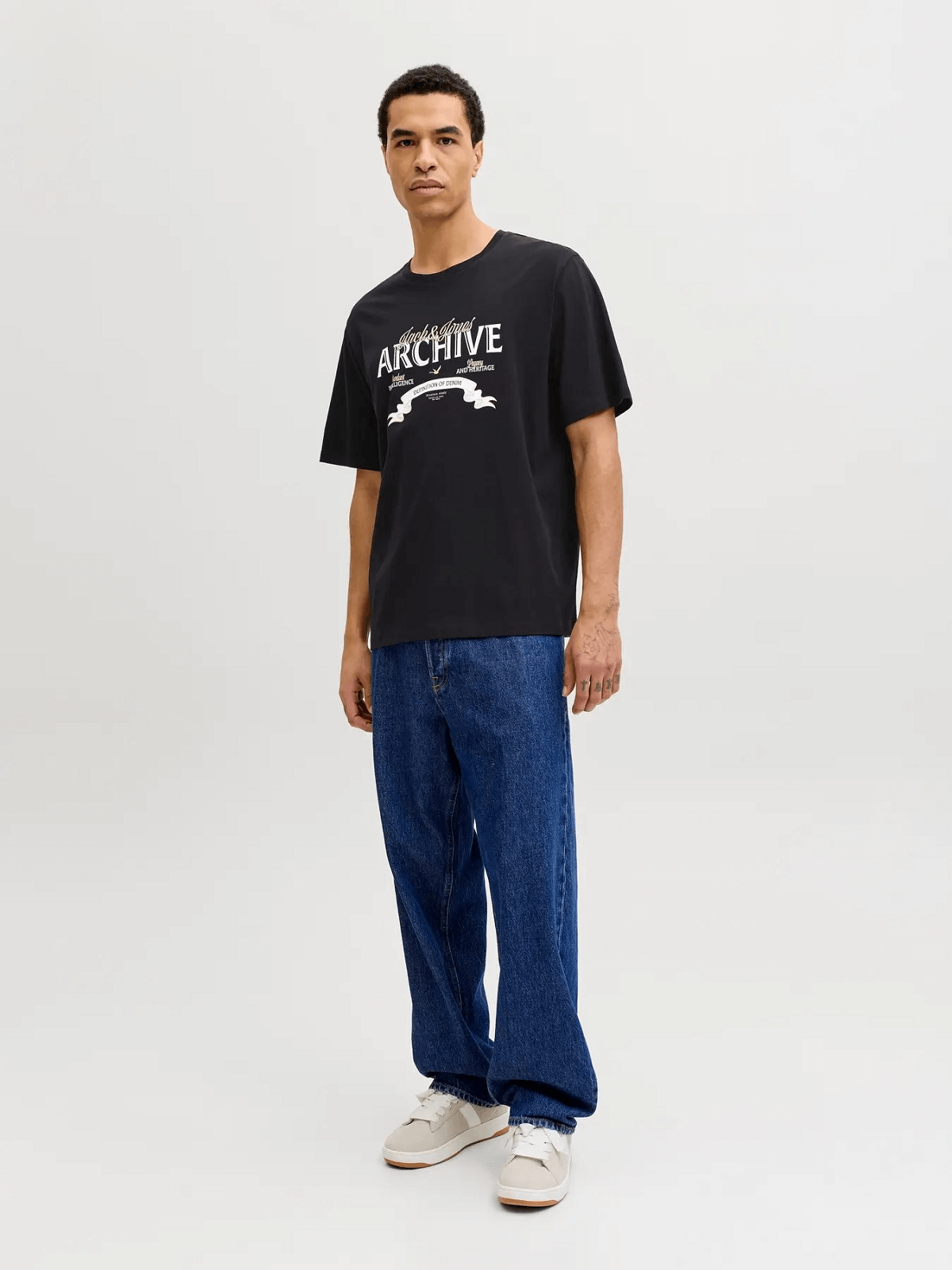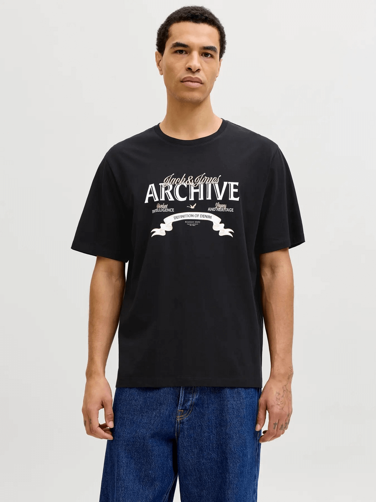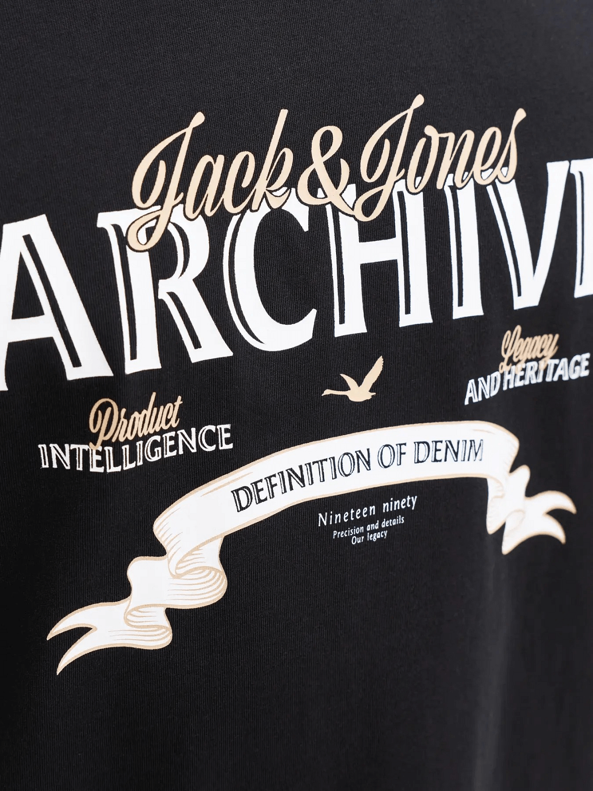 Ανδρικό βαμβακερό T-shirt με τύπωμα στο στήθος Jack&Jones μαύρο χρώμα