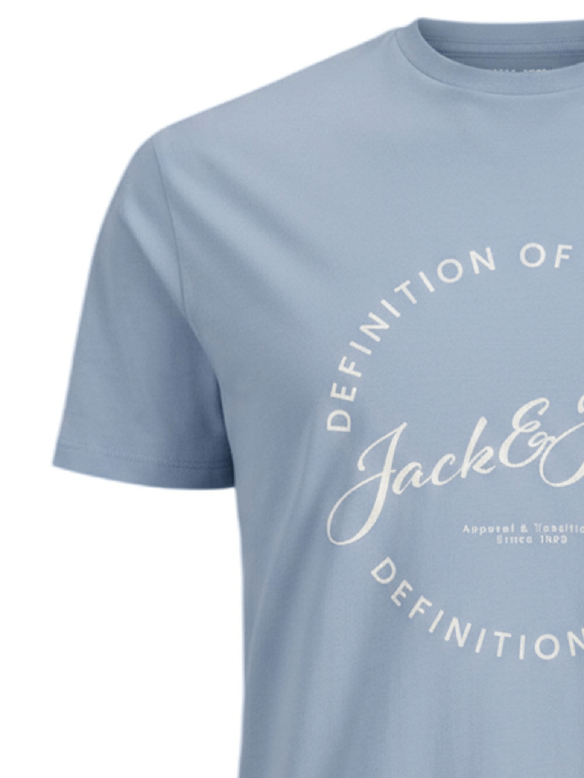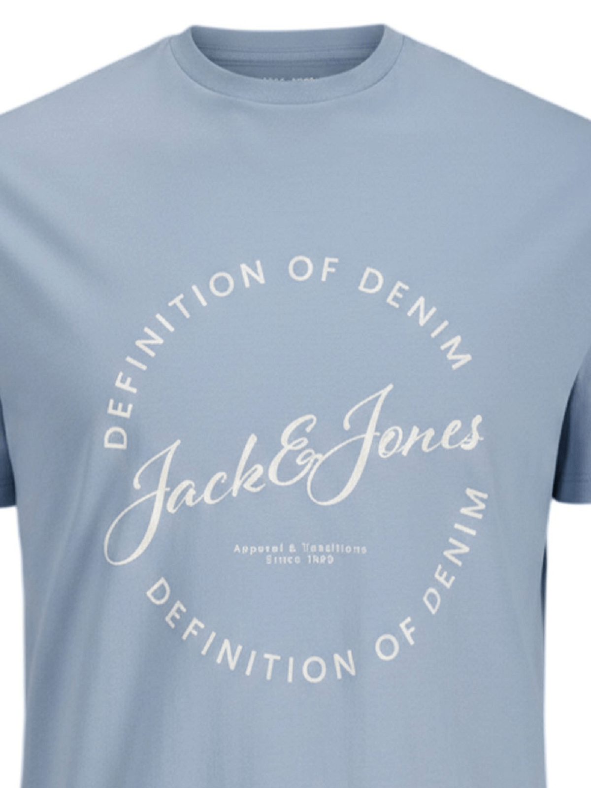 Ανδρικό βαμβακερό T-shirt με τύπωμα στο στήθος Jack&Jones σιέλ χρώμα