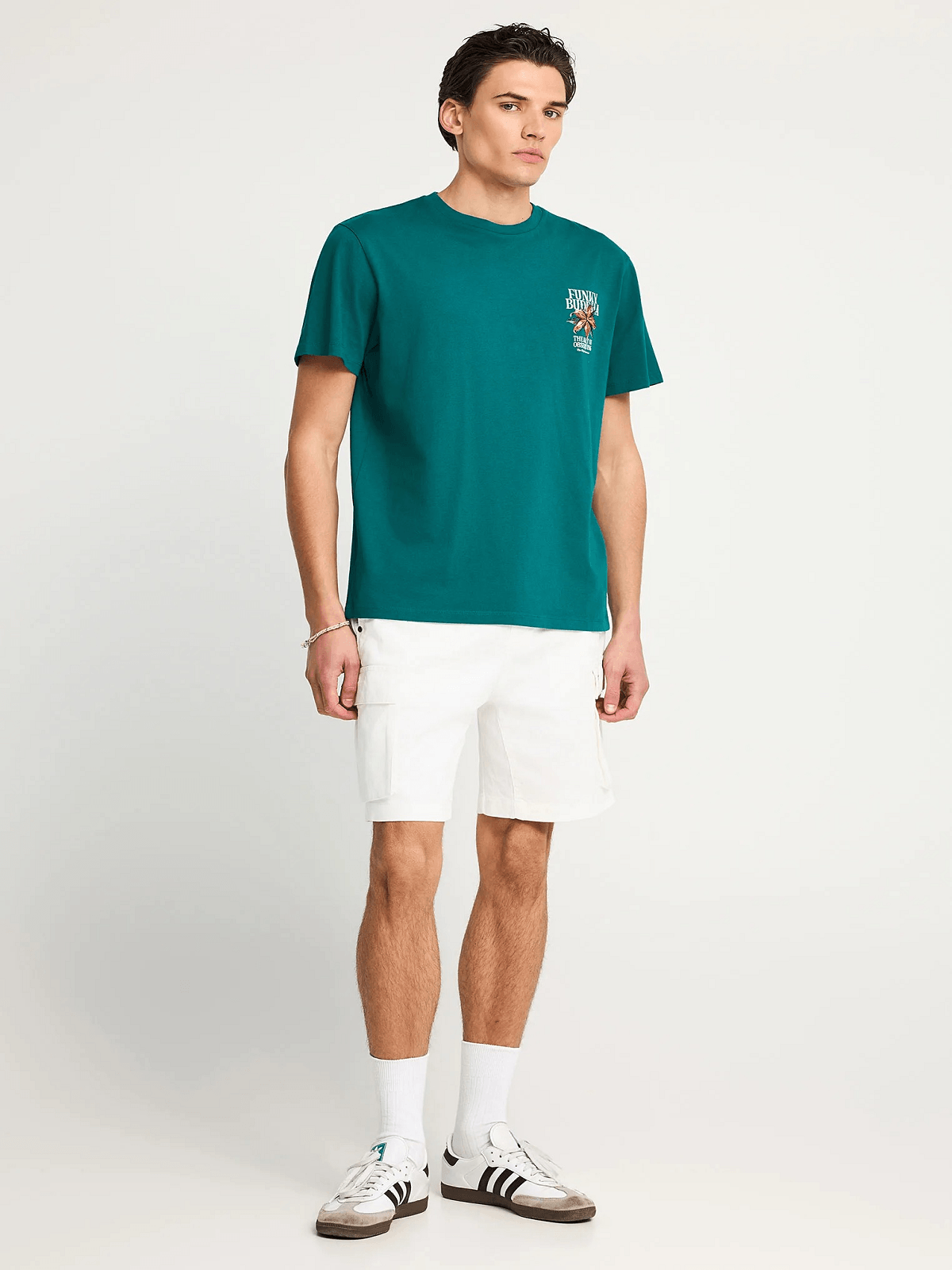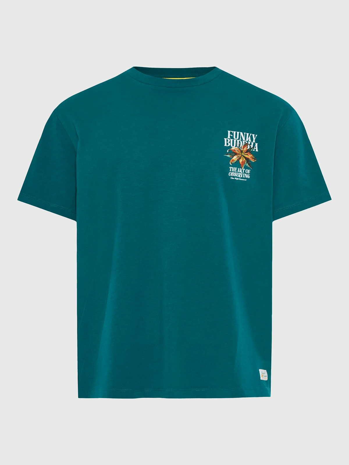 Ανδρικό βαβακερό t-shirt με τύπωμα στην πλάτη Funky Buddha πετρόλ χρώμα