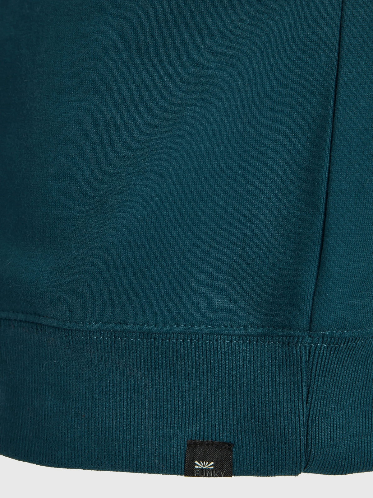 Ανδρικό φούτερ με τυπωμένο logo και λαιμόκοψη Funky Buddha πετρόλ χρώμα