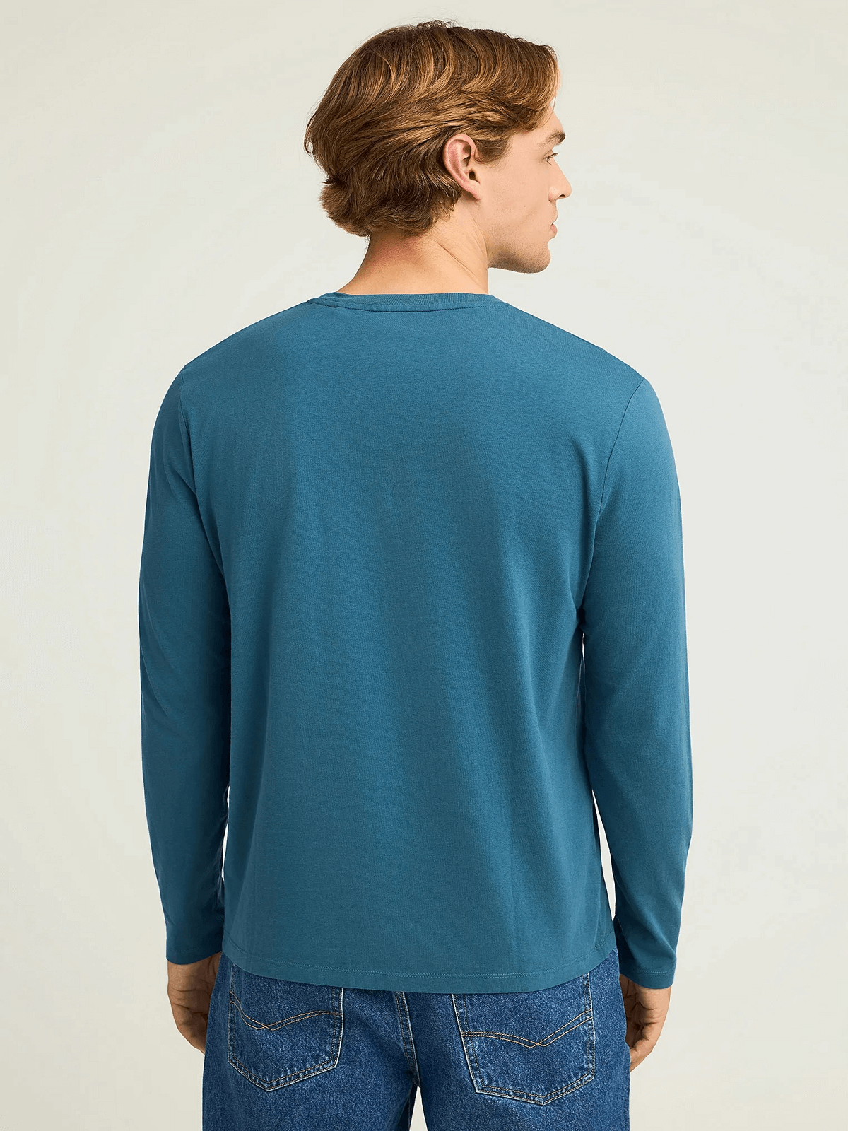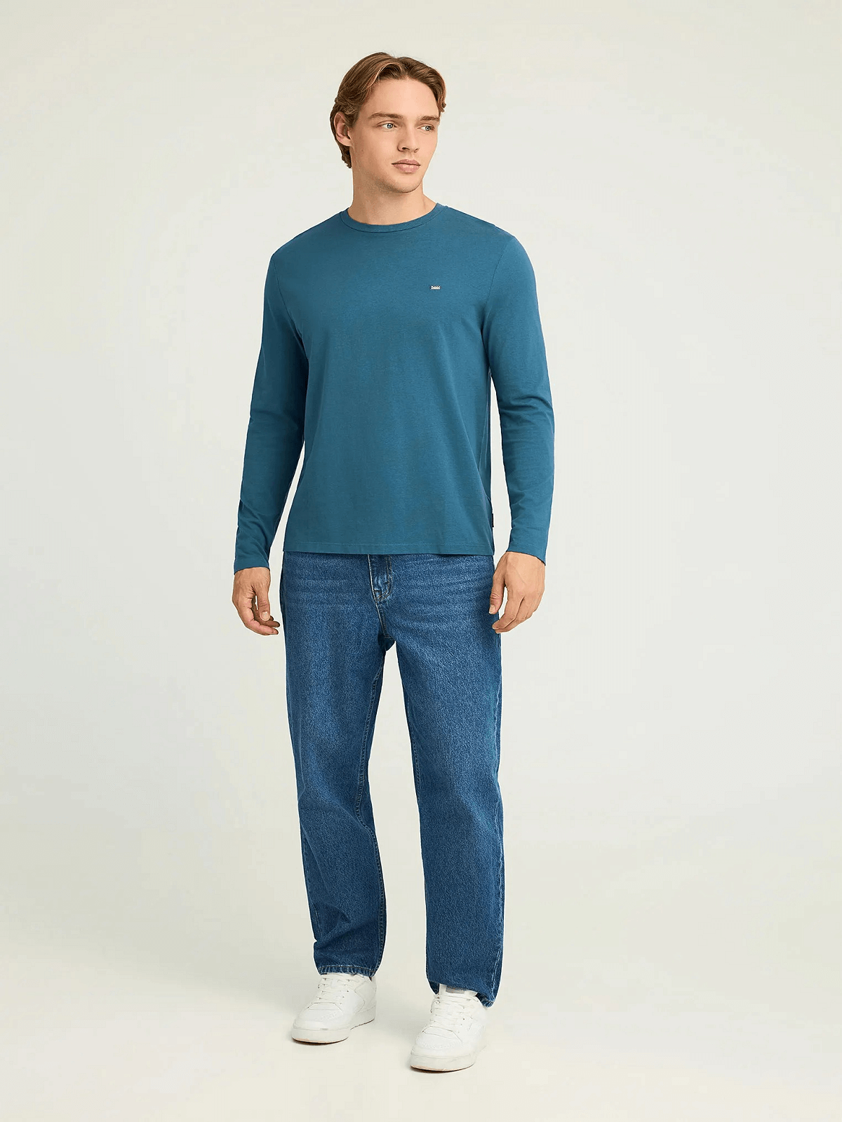Ανδρική μονόχρωμη μπλούζα με στρογγυλή λαιμόκοψη και μακριά μανίκια, φτιαγμένη από 100% βαμβάκι για απόλυτη άνεση. Με κανονική εφαρμογή και ίσια γραμμή στο ύψος των γοφών, είναι ιδανική για το φθινόπωρο και τον χειμώνα. Το απλό αλλά κομψό design την καθιστά απαραίτητο κομμάτι για κάθε ντουλάπα. Συνδυάστε τη με τζιν και sneakers για ένα χαλαρό, effortless look.