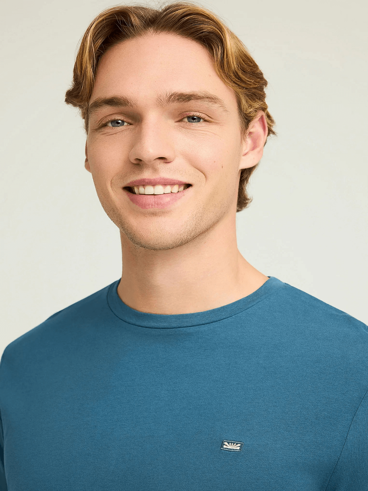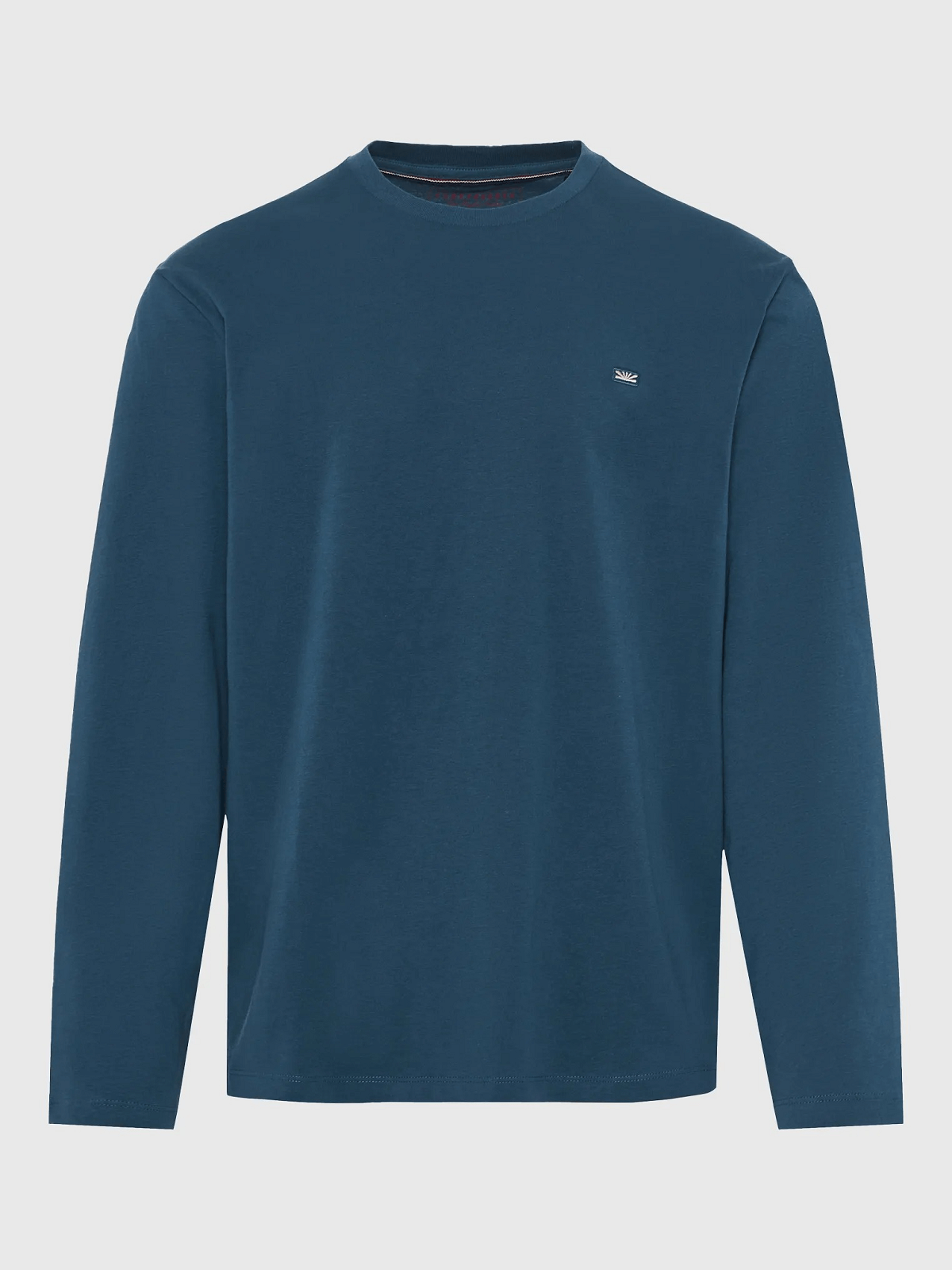 Μακρυμάνικη μονόχρωμη μπλούζα με διακριτικό λογότυπο Funky Buddha πετρόλ χρώμα