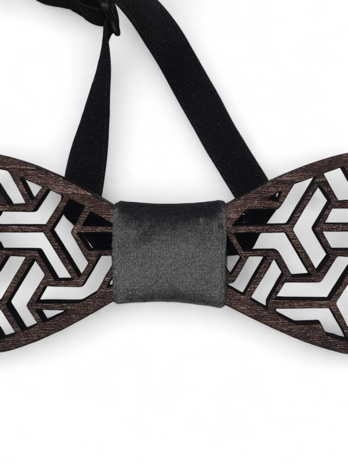 Ξύλινο παπιγιόν με πινελιά από γκί ύφασμα στη μέση,διαθέτει ελαστικό ρυθμιζόμενο ιμάντα για ευκολία κατά την χρήση του.