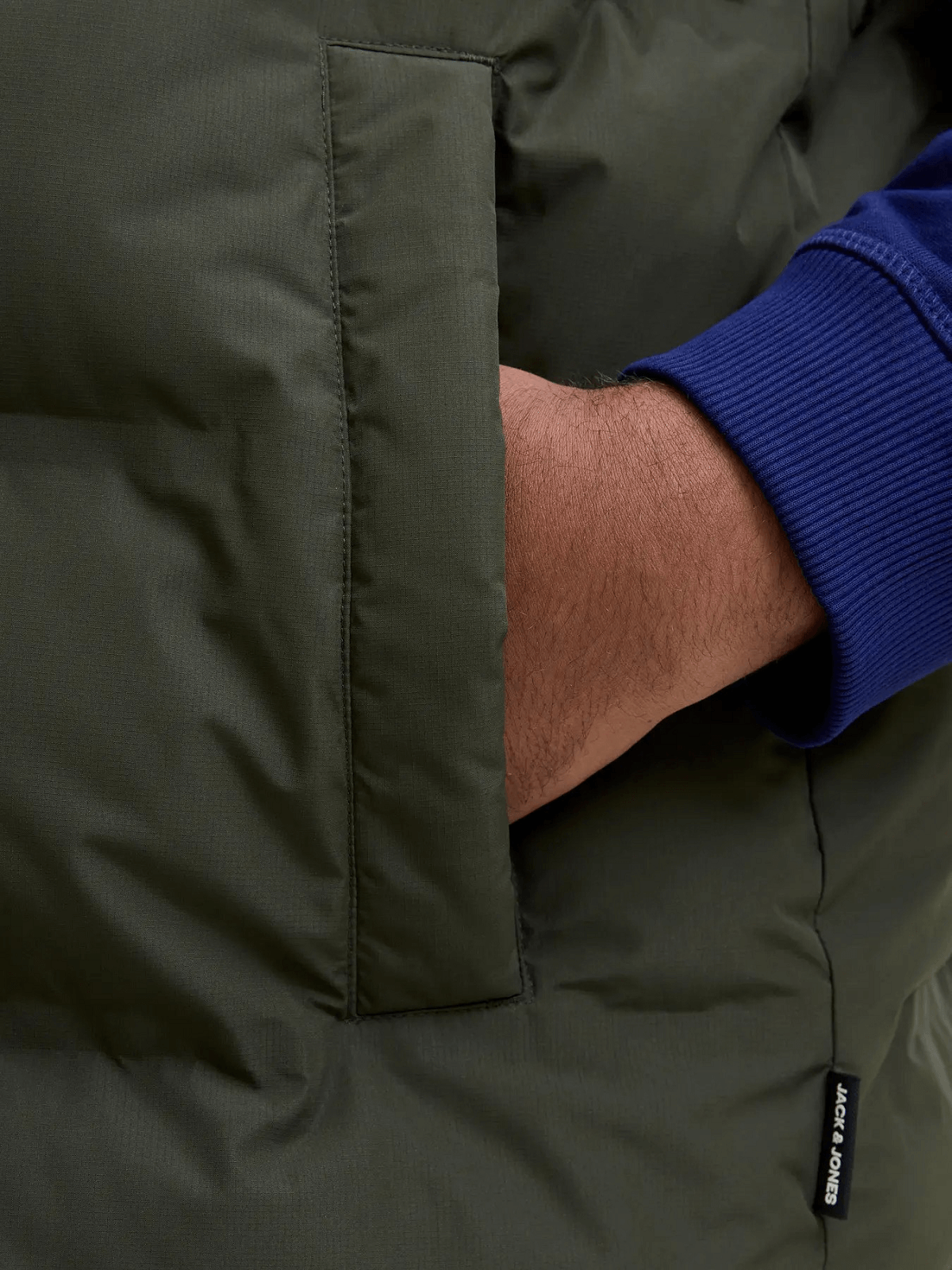 Ανδρικό αμάνικο μπουφάν PLUS SIZE λαδί χρώμα Jack&Jones