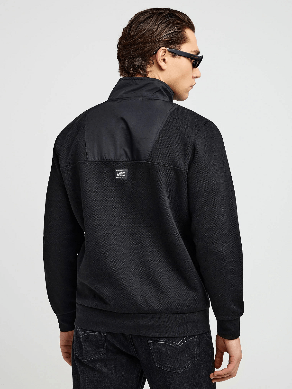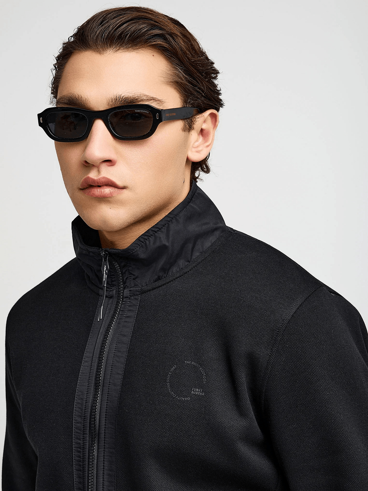 Ανδρική μονόχρωμη πικέ ζακέτα με φερμουάρ Funky Buddha μαύρο χρώμα