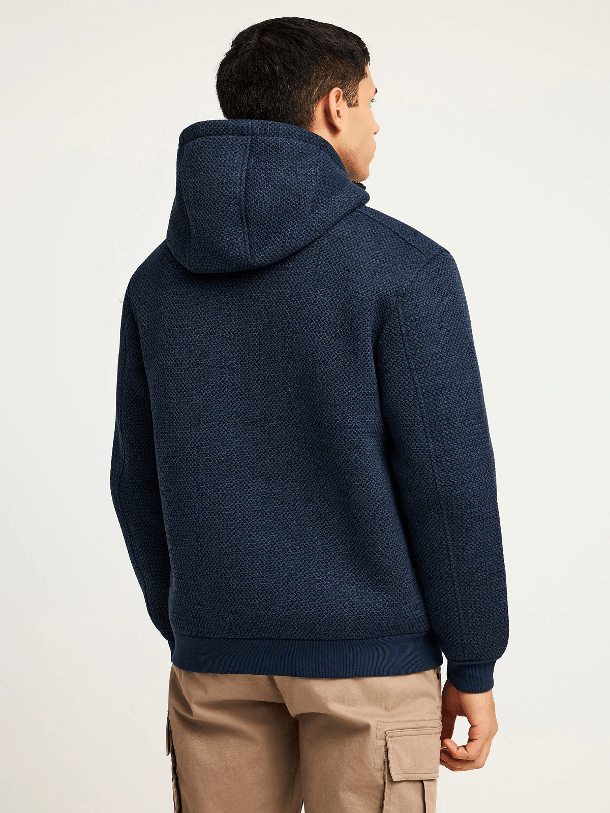 Ιδανική για το φθινόπωρο και τον χειμώνα, αυτή η ανδρική ζακέτα φούτερ με κουκούλα συνδυάζει άνεση και urban στυλ. Με κανονική εφαρμογή, crew λαιμόκοψη και μονόχρωμο σχέδιο, διαθέτει κλείσιμο με φερμουάρ, μακριά μανίκια και μήκος στο ύψος του ισχίου. Τα ίσια στριφώματα και οι μανσέτες με ριπ πλέξη χαρίζουν σταθερή εφαρμογή, ενώ η τσέπη με φερμουάρ προσθέτει πρακτικότητα. Το πλεκτό τουίντ και το ανάγλυφο φινίρισμα δίνουν μια διακριτική κομψότητα. Συνδυάστε τη με τζιν και sneakers για μια χαλαρή athleisure εμφάνιση.