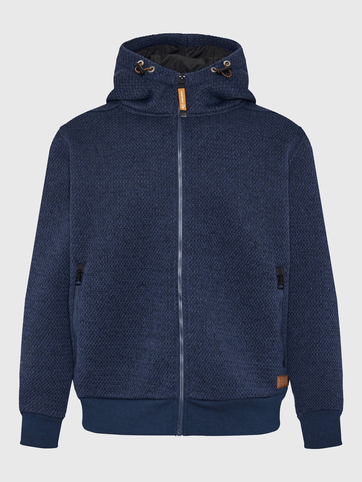 Ανδρική μονόχρωμη ζακέτα με κουκούλα σε πλεκτό ύφασμα Funky Buddha μπλέ χρώμα
